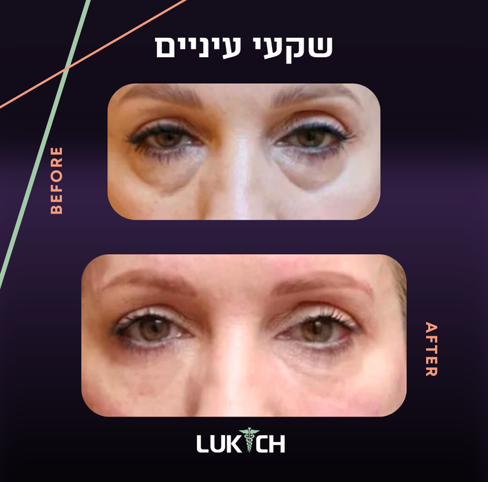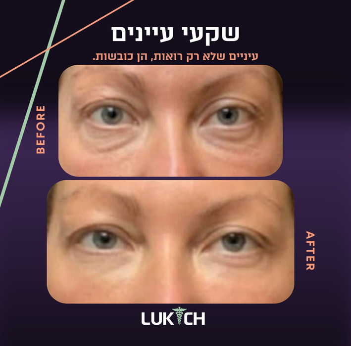 מילוי טבעי לשקעי עיניים, שיפור מיידי במראה העייפות, לא ניתוח, לא כאב, תוצאה שנראית כמו 8 שעות שינה.